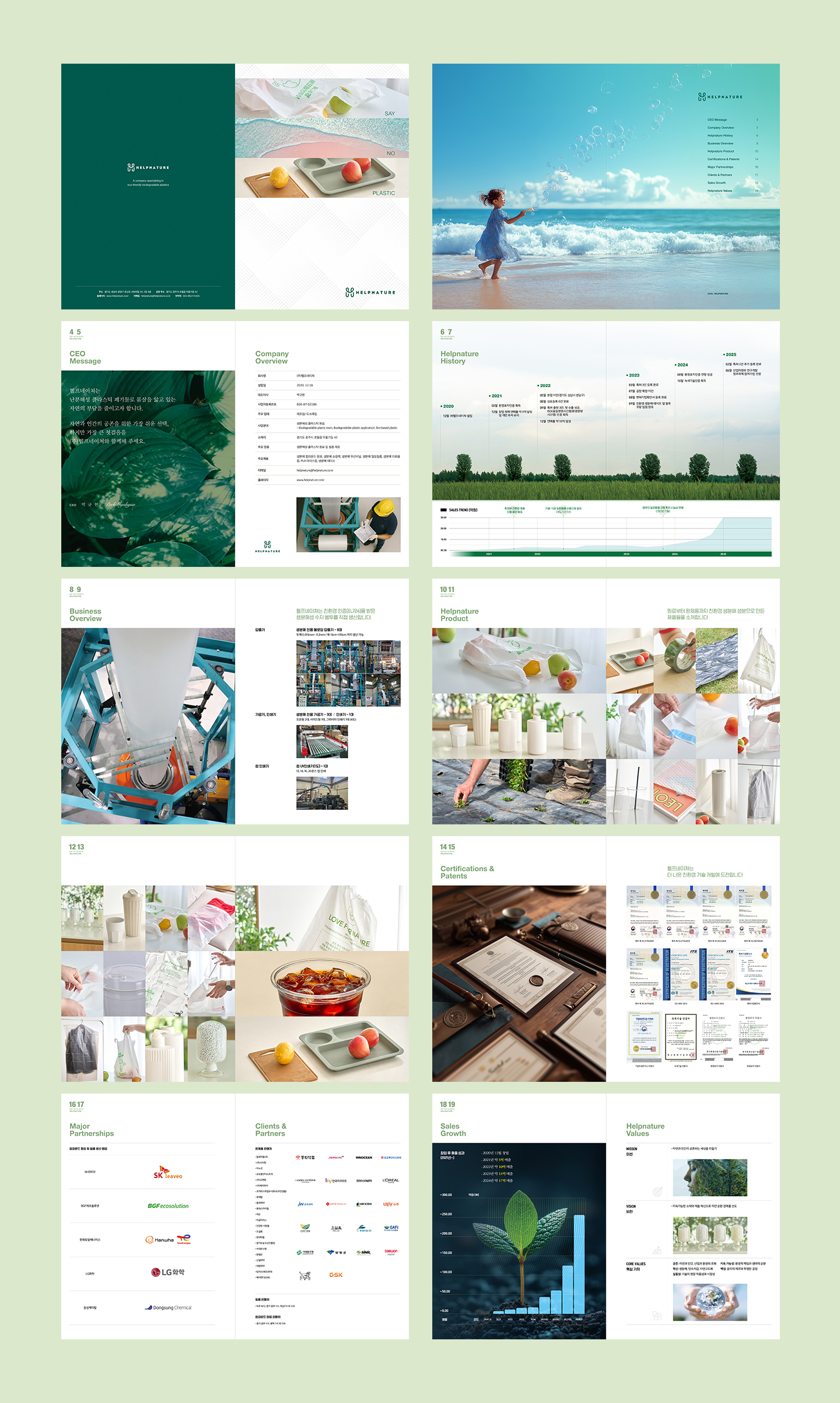 친환경 플라스틱과 비닐을 사용한 제품을 만드는 헬프네이쳐의 회사소개서와 카탈로그입니다.